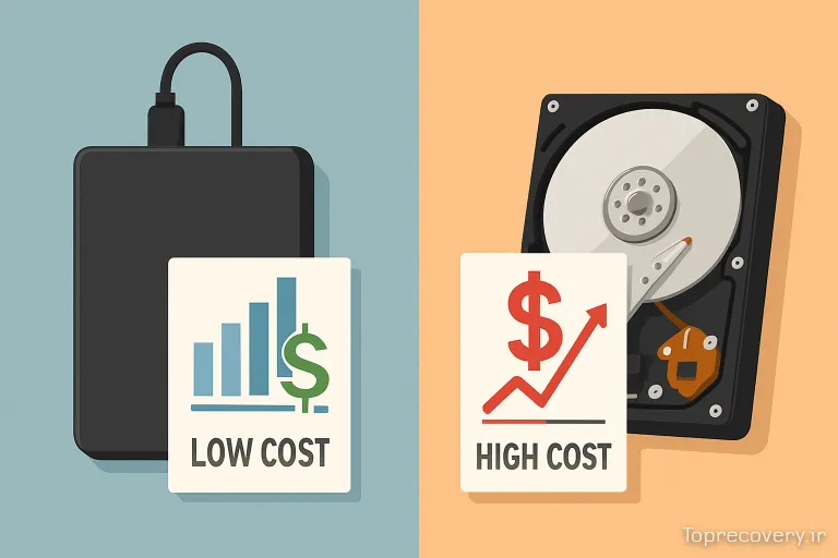 بهطور معمول، هزینه تعمیر هارد اکسترنال کمی بیشتر است، چون علاوه بر مشکلات مشترک با اینترنال، خرابیهای اختصاصی مثل برد مبدل USB نیز باید برطرف شود.